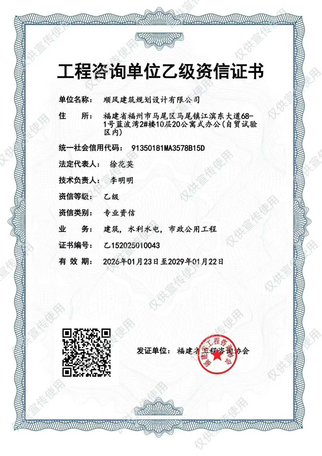 工程咨询单位乙级资信预评价证书